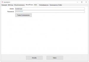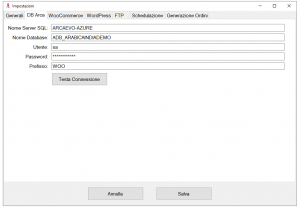 In questa sezione andremo ad indicare tutti i parametri di connessione al sito Woocommerce e al gestionale ArcaEvolution.