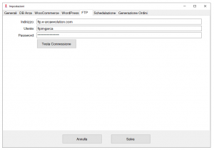 Qui vanno impostati i parametri di connessione all’indirizzo FTP di trasferimento immagini qualora si scegliesse questa modalità (facoltativo)