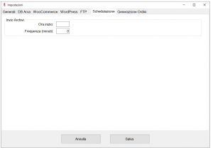 Qui vanno impostati i parametri di connessione al sito di Woocommerce e la modalità di invio delle immagini
