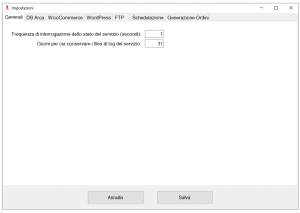Vanno impostate le configurazioni base per la frequenza del servizio (espressa in secondi) e per quanti giorni deve conservare i file di log.