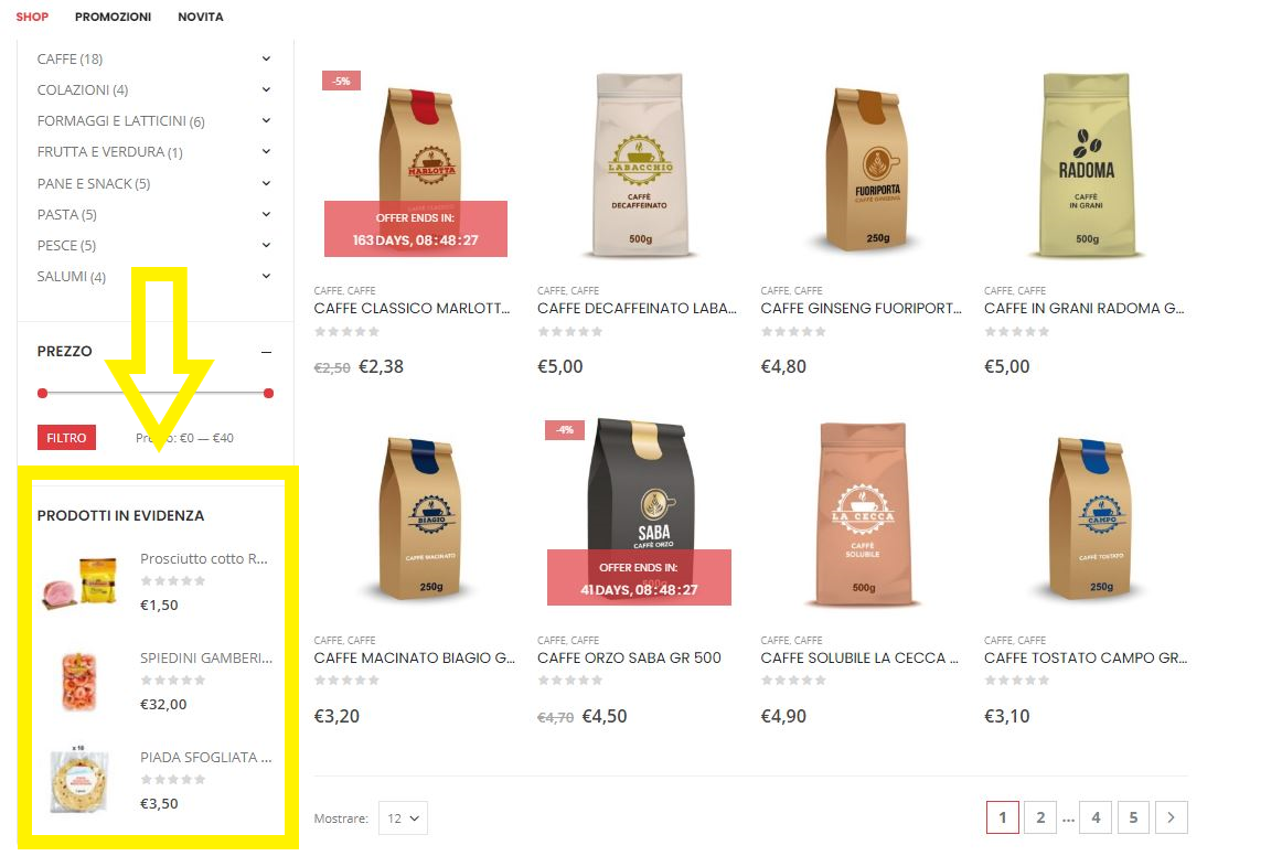 Per indicare i prodotti in evidenza all’interno dell’e-commerce si dovrà utilizzare un attributo booleano speciale con: