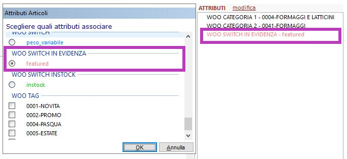 In questo modo sarà visualizzabile a lato insieme ad eventuali altri attributi già presenti per quell’articolo.