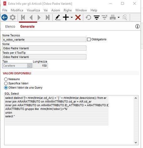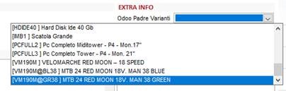 - Sul campo Extra Info: Woo Padre Variante, selezionare l’articolo padre (*vedi sotto come codificare il campo extra info)