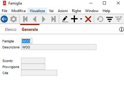 - Cliccare con il pulsante “f3” sul campo “famiglia cliente” per selezionare la famiglia “WOO” precedentemente creata;