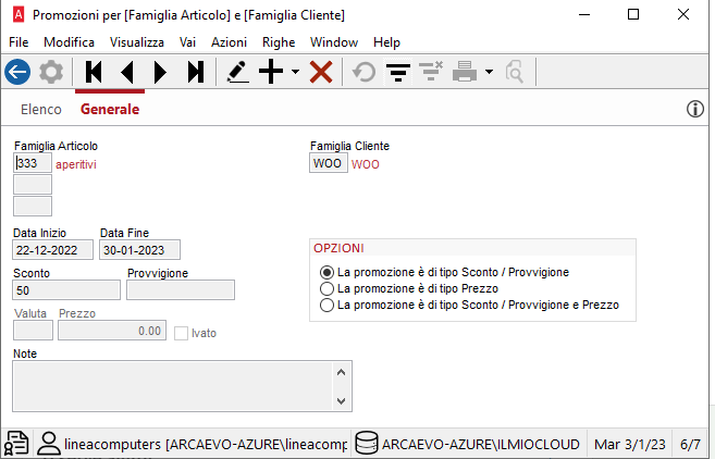 Listini > Promozioni > Fam.Art./Fam.Cliente