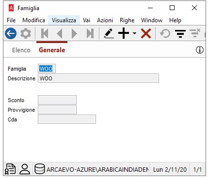 - Cliccare con il pulsante “f3” sul campo “famiglia cliente” per selezionare la famiglia “WOO” precedentemente creata;