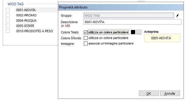 Per es. WOO TAG NOVITÀ; WOO TAG BIOLOGICO..