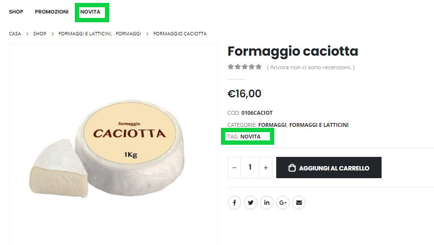 Per es. WOO TAG NOVITÀ; WOO TAG BIOLOGICO..