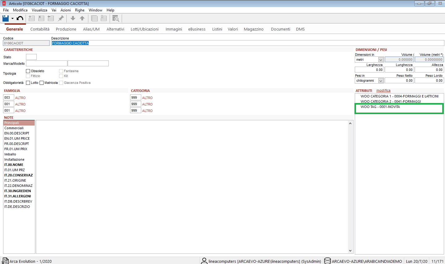 L’associazione dei TAGs non prescinde quella relativa alle CATEGORIE WEB (Vedi “ATTRIBUTI” ) che rimane OBBLIGATORIA per le importazioni dell’articolo lato web.